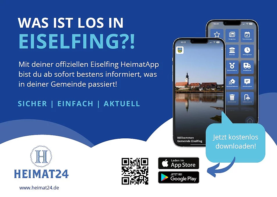 Unser gemeinsames Ziel ist es, Sie bestmöglich auf dem Laufenden zu halten, was in Ihrer Heimatgemeinde Eiselfing los ist. Laden Sie sich dazu die kostenlose HeimatApp für Ihre Gemeinde Eiselfing ohne Registrierung herunter.