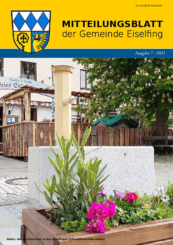 Beiträge, die im Mitteilungsblatt der Gemeinde Eiselfing erscheinen sollen, werden möglichst als Word-Dokument per E-Mail an gebuehren@eiselfing.de erbeten. Bilder müssen als separate Dateien und nicht in die Textdokumente eingebunden zugeschickt werden. Die Einsenderin/der Einsender übernimmt die Gewähr, dass sie/er über die Rechte zur Veröffentlichung des Text- und Bildmaterials verfügt und stellt die Gemeinde Eiselfing von allen Ansprüchen Dritter wegen der Veröffentlichung der Bilder frei.