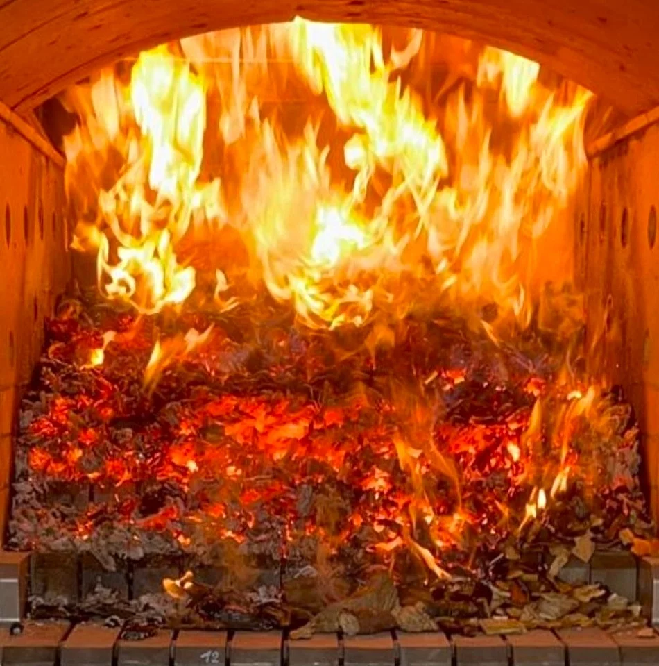 Foto: Blick in einen der Hackschnitzel-Brennöfen in der neuen Heizzentrale in Eiselfing.